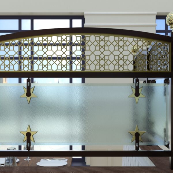Commission PADS Design Studio to create luxury high end room divider and partitions incorporating the use of our exclusive range of luxury Insignia glazing clamps and associated grilles. Below we have prepared a variety of design styles to showcase the use of our glazing clamps on high end architectural metalwork room divider and partitions.