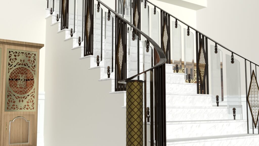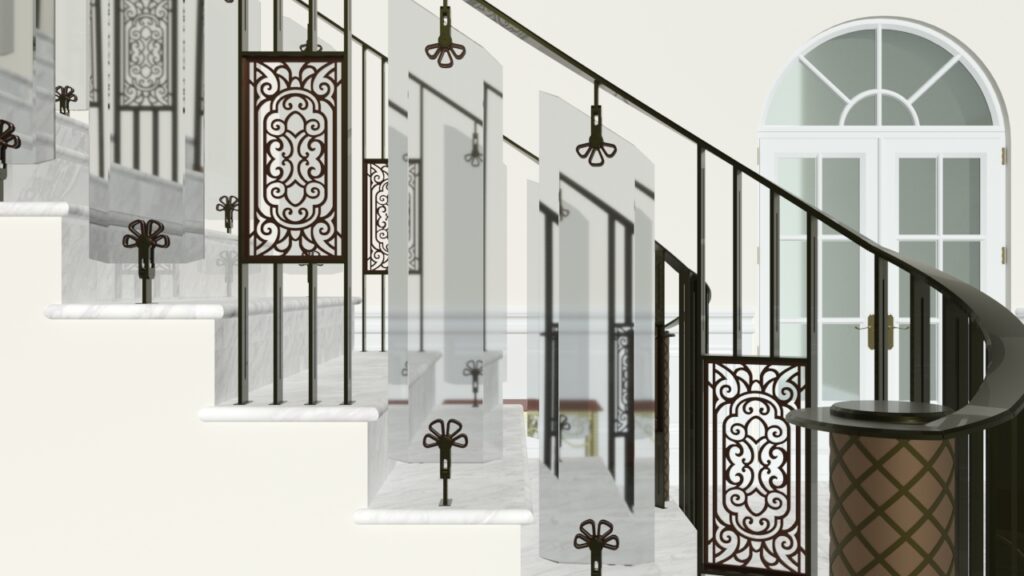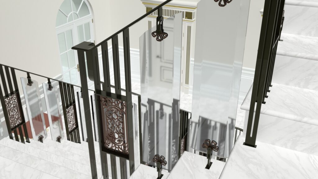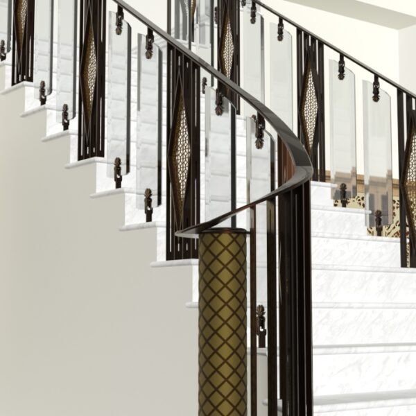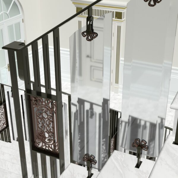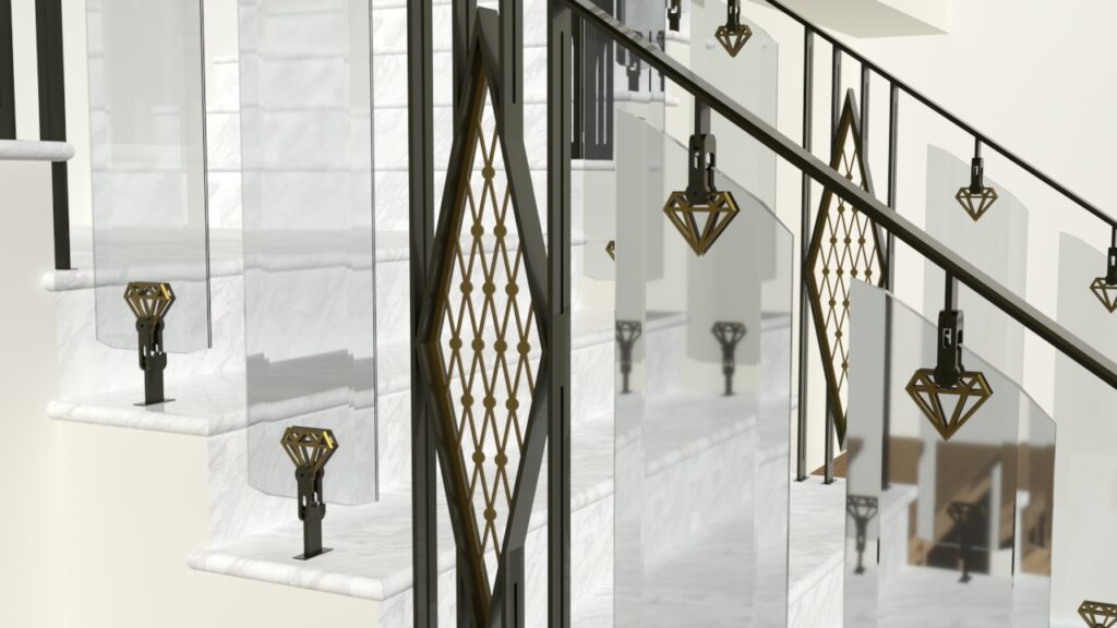 Explore below a variety of staircase balustrading design styles we have prepared to showcase the use of our exclusive range of Insignia glazing clamps and associated grilles, which have been put to work on a sweeping residential staircase.